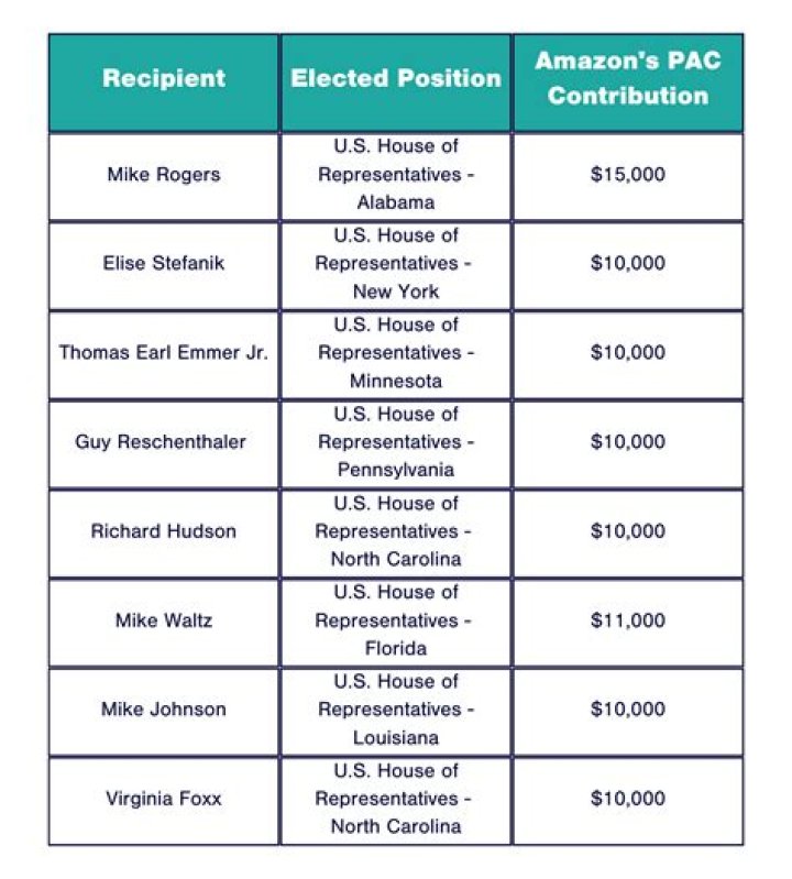 - Candidates: Amazon has donated to both Democratic and Republican candidates running for office at the local, state, and federal levels.